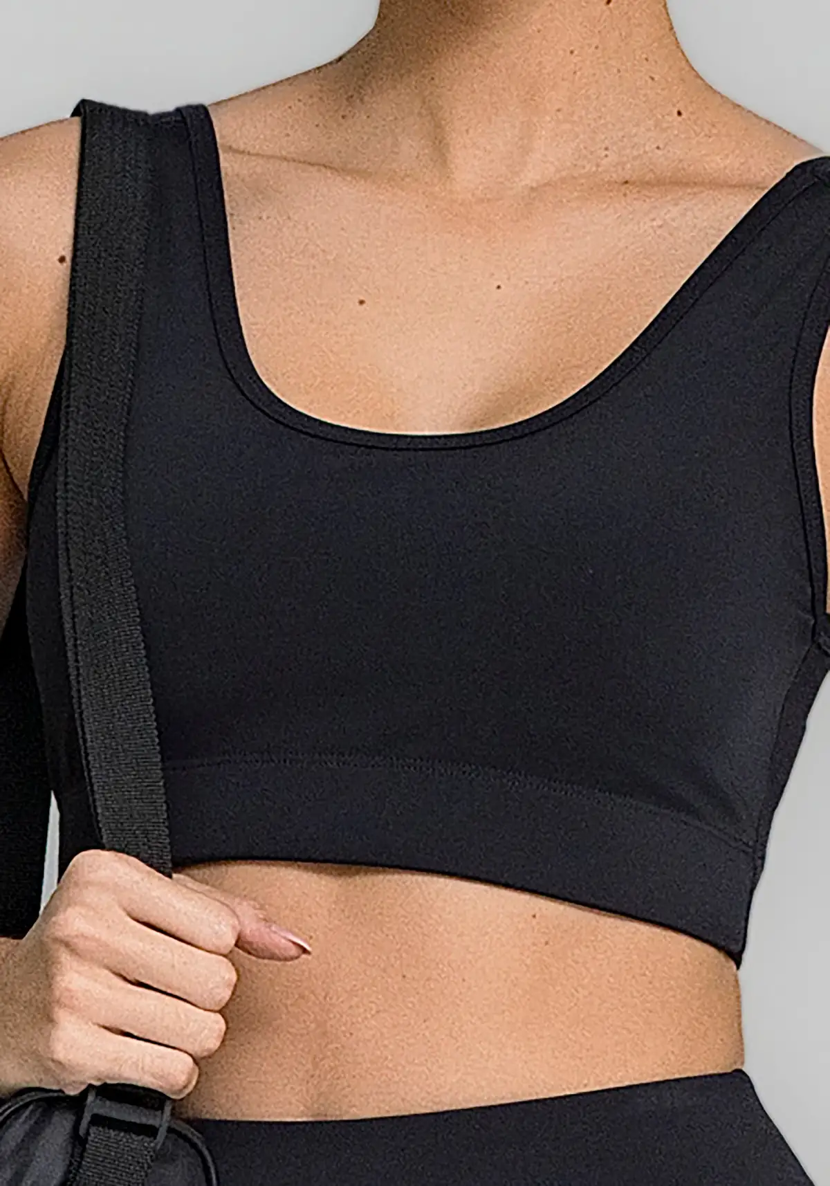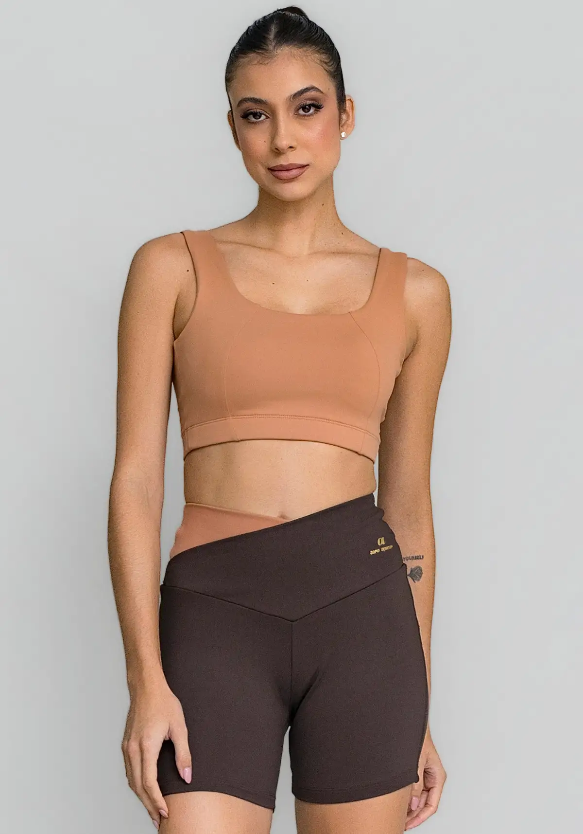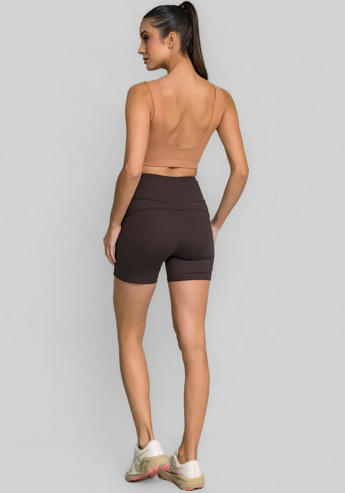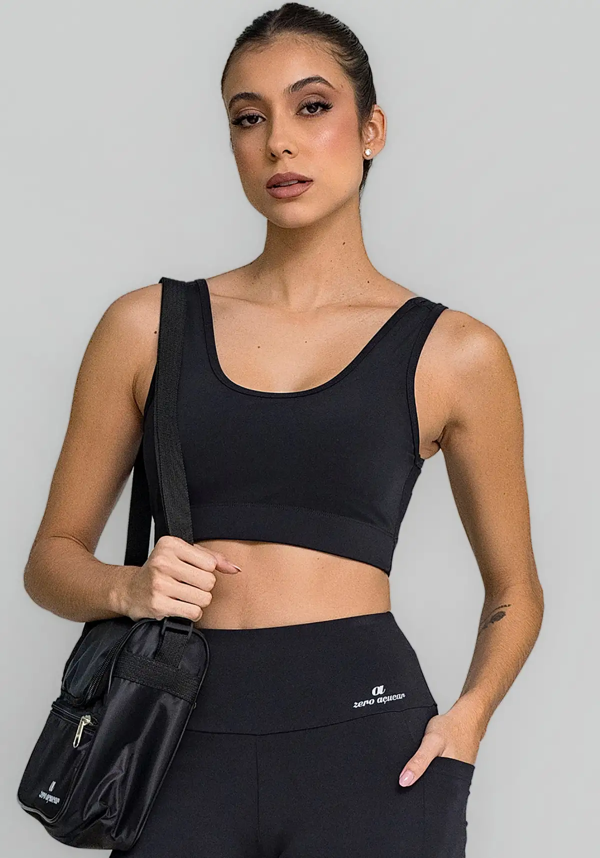 Vai bem com leggings, bermudas e shorts lisos ou com detalhes brilhosos — excelente base para montar looks de treino versáteis.