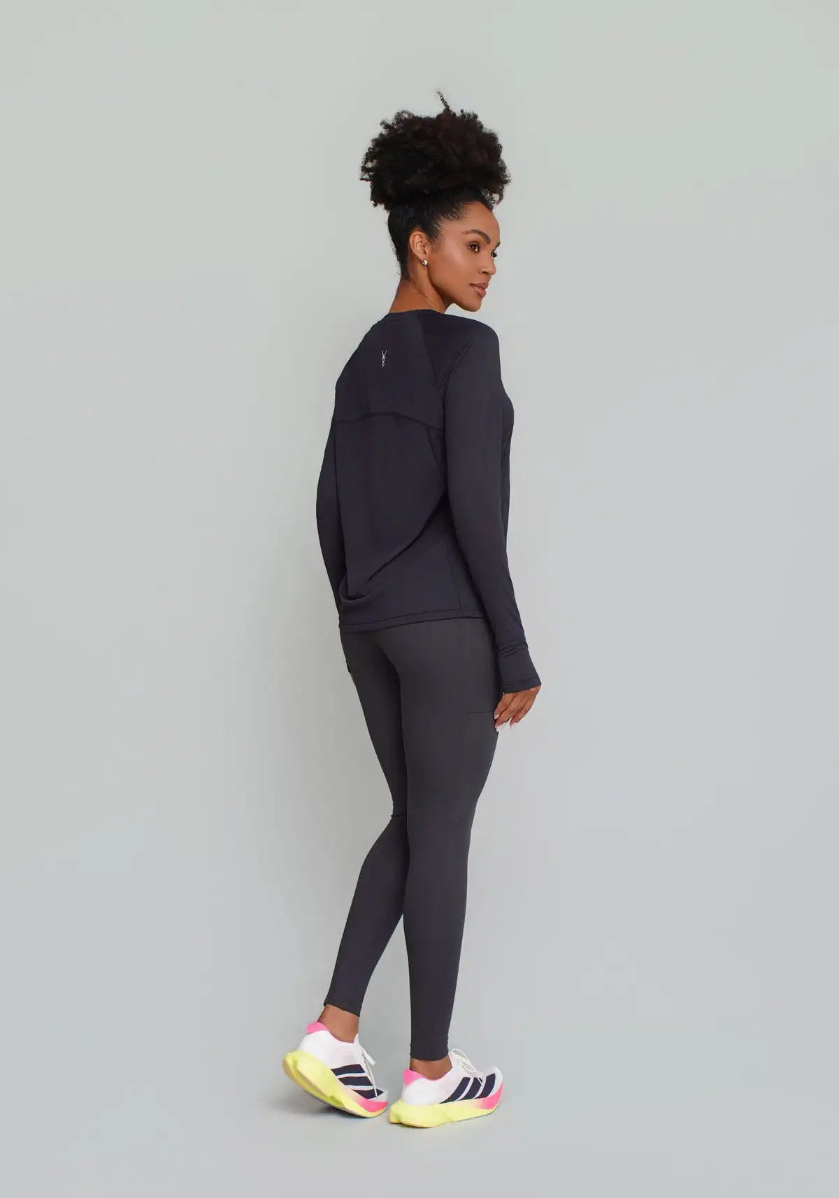 Com modelagem anatômica e cintura média para alta, a legging se ajusta perfeitamente ao corpo, garantindo segurança e liberdade nos movimentos. O design moderno e funcional valoriza a silhueta e expressa a força e determinação das corredoras de longa distância.