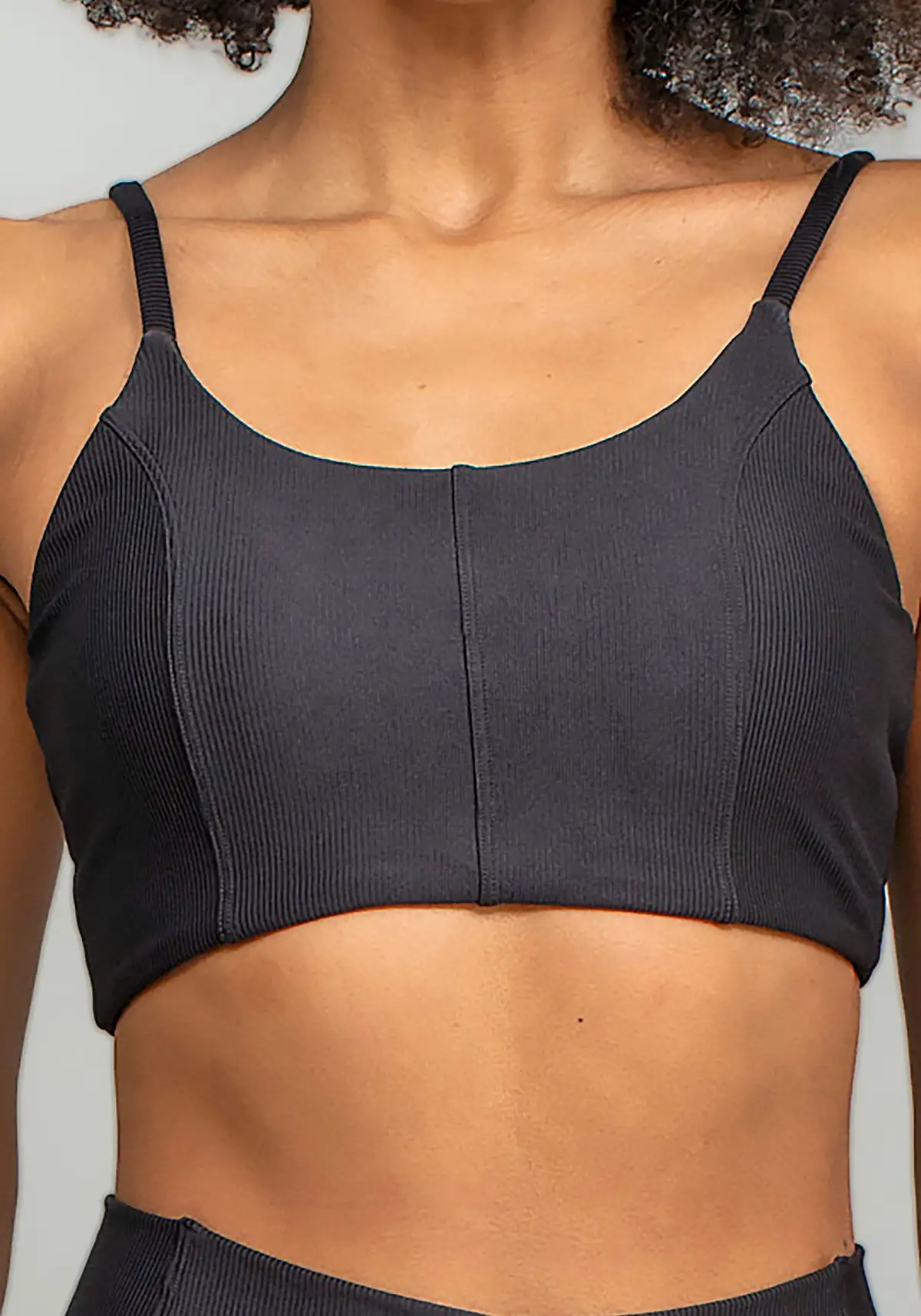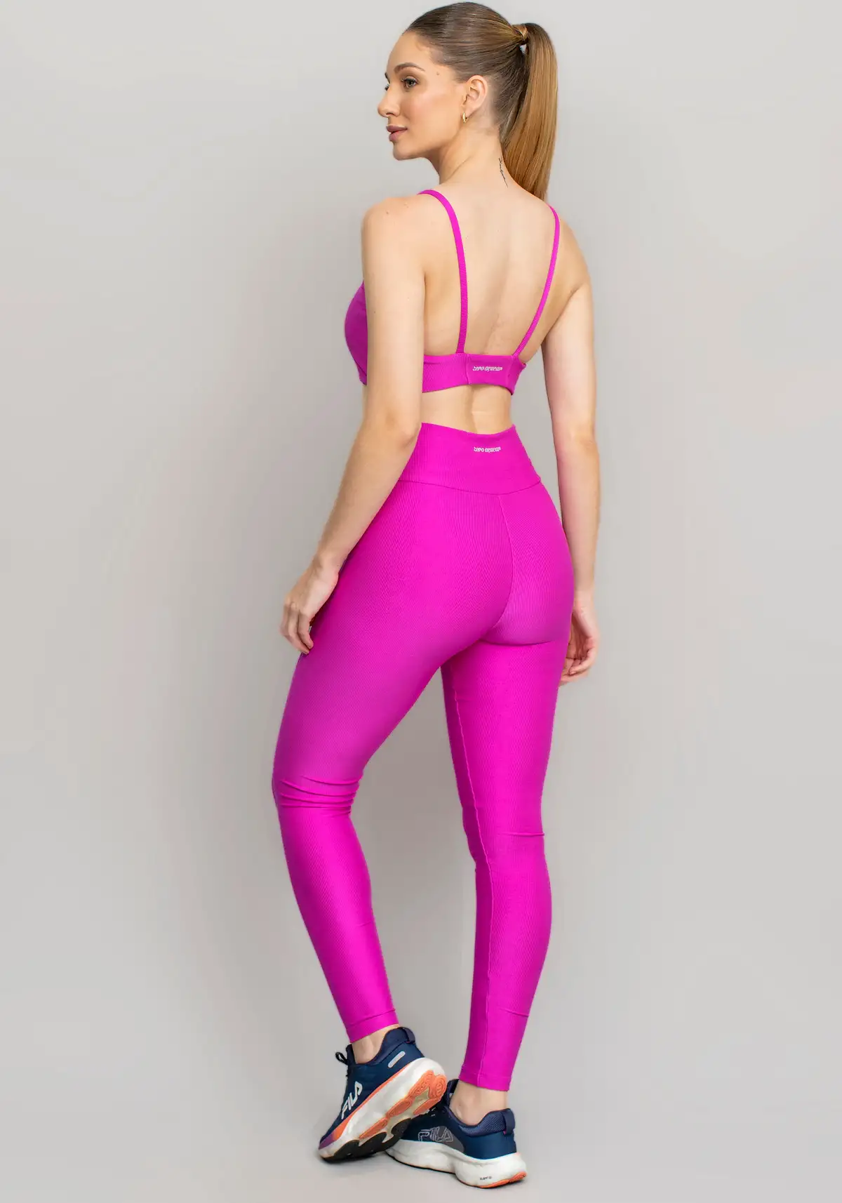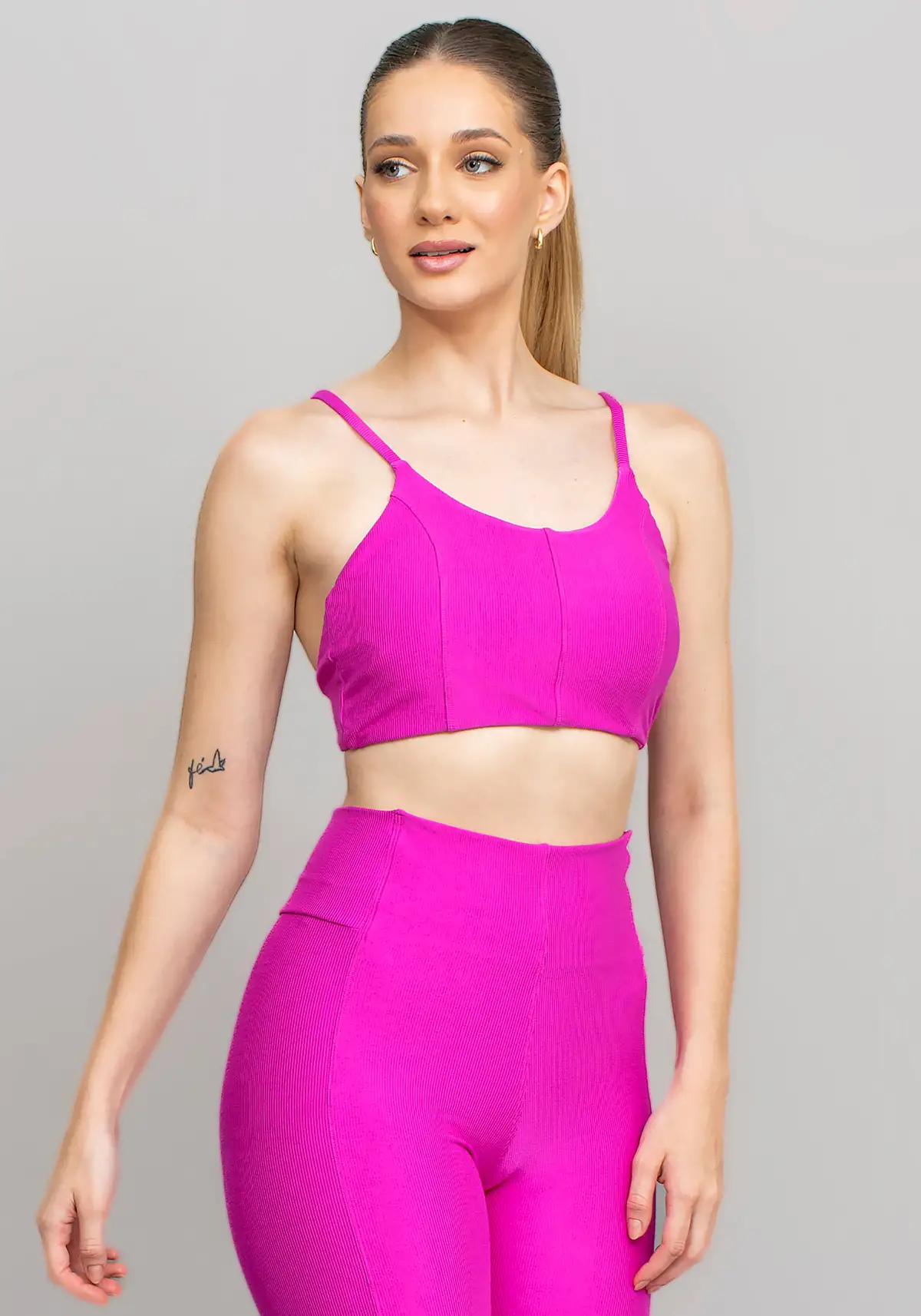 Modelagem que acompanha o corpo sem restringir movimentos, garantindo suporte discreto no busto e mobilidade total durante exercícios.