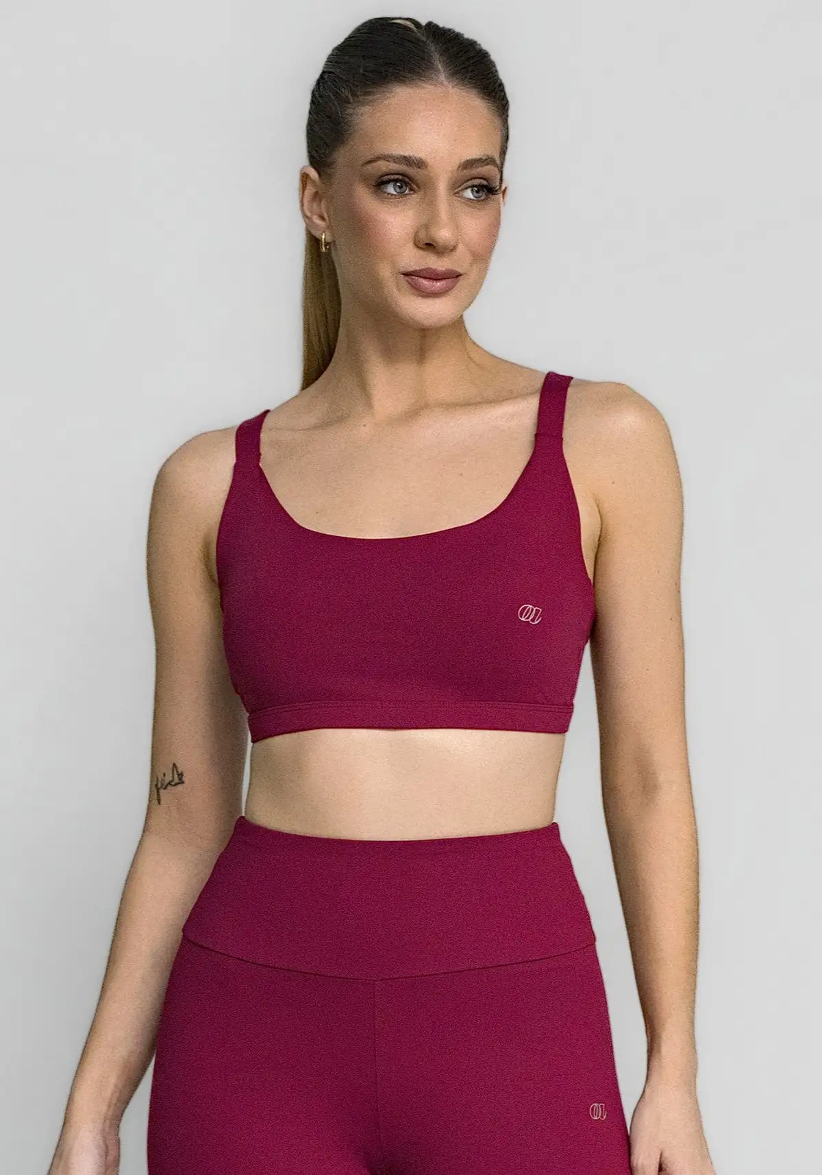 O detalhe cruzado nas costas traz visual moderno e favorece ventilação, enquanto a modelagem desenha a silhueta com leve compressão e caimento seguro.